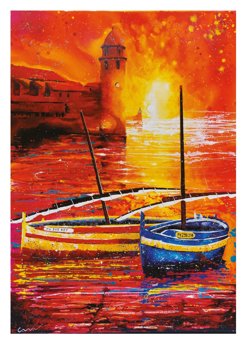COLLIOURE style surréalisme, Église Notre-Dame-des-Anges et les barques catalanes 3