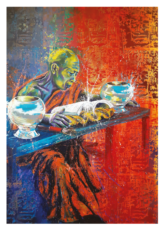 SPIRITUEL, style peinture, le Bonze lecteur