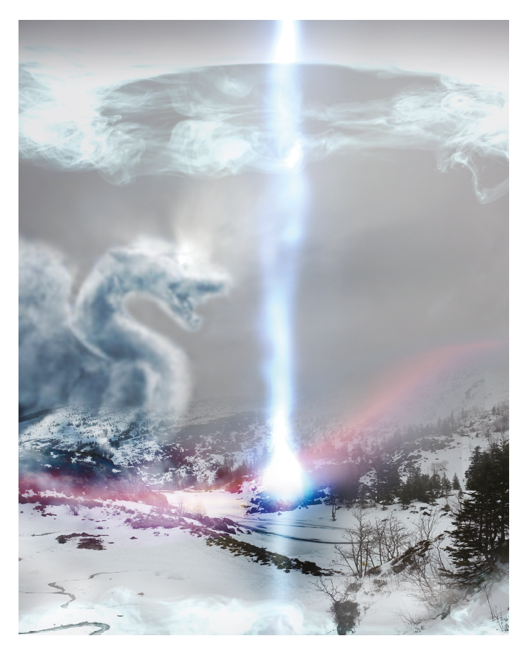 SPIRITUEL, style photo, le dragon du lac gelé
