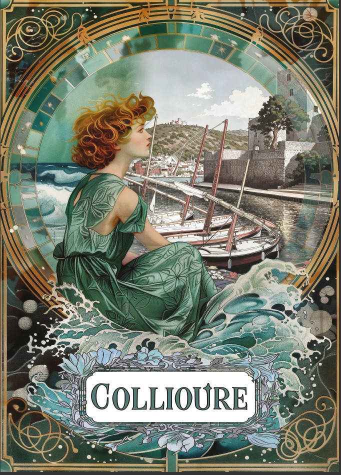 COLLIOURE style art nouveau, le château royal et les barques catalanes